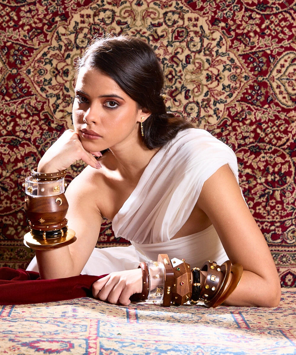 Unleash bold elegance with the Shakti Nidar Resin Bangle. Crafted for those who dare to stand out, this striking accessory blends modern resin artistry with fearless style. Its sleek design adds a powerful statement to any outfit, empowering you to express your unique spirit with confidence.