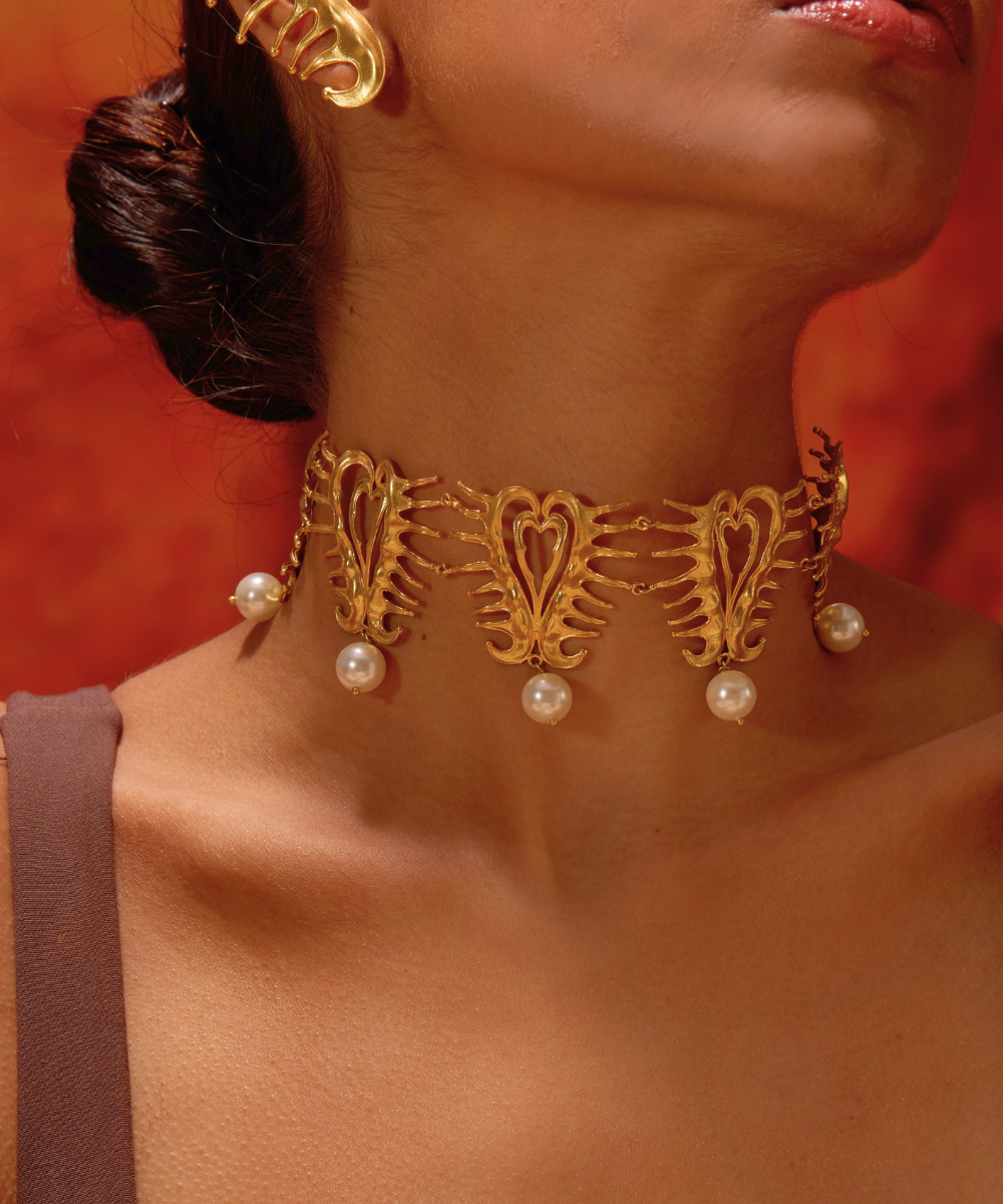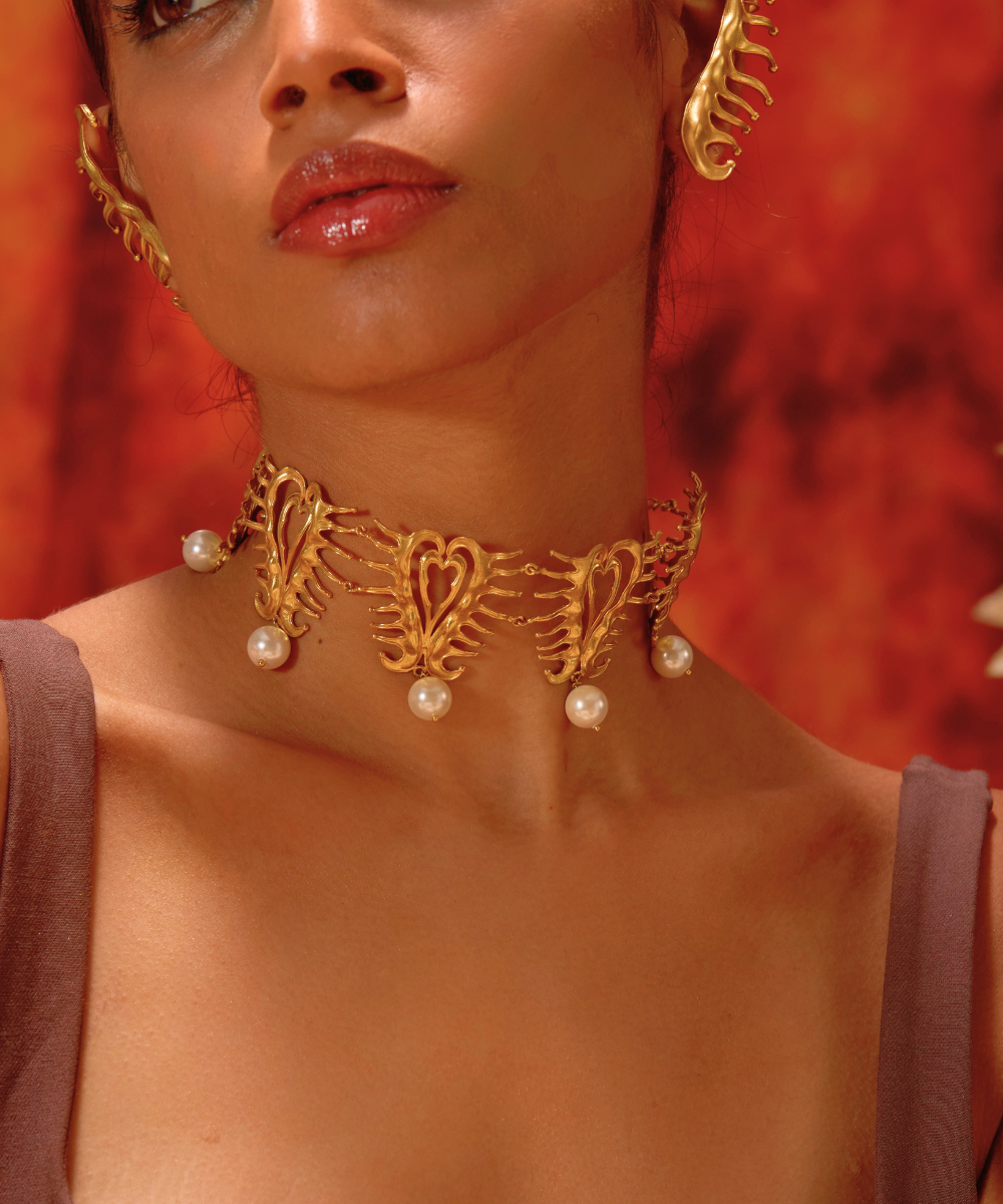 Elevate your outfit with our Amour Heart Choker from our Chic Amour Collection. Channel your inner Parisian with this statement piece to make a lasting impression at any event. A go-to jewelry piece that's both fun and trendy, with delicate pearl detailing.