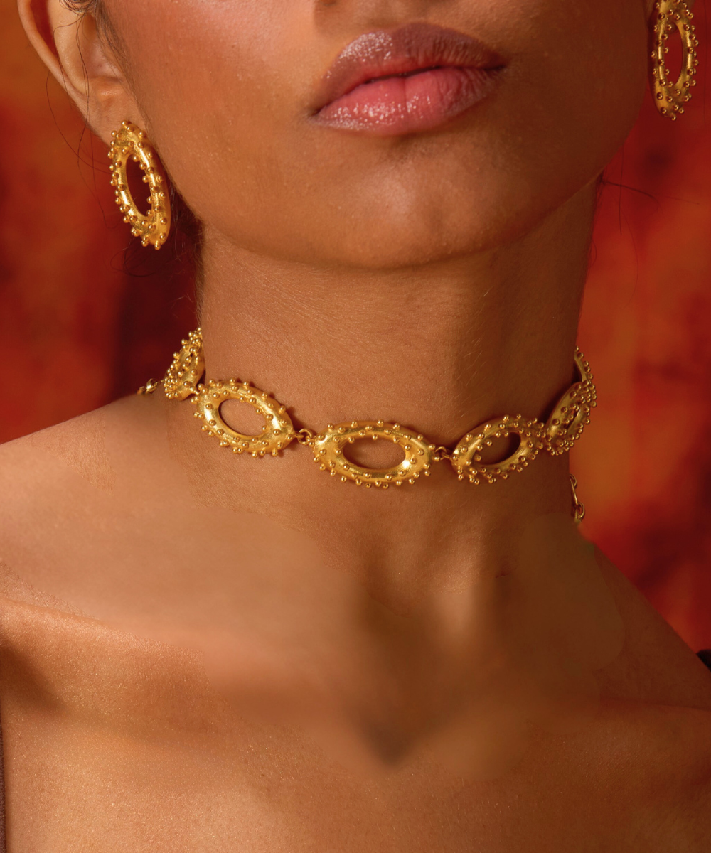 Indulge in the epitome of sophistication with our Vine Mini Oval Choker from the Chic Amour Collection. Fall in love with Paris as you make a statement at your next event with this luxurious and trendy piece. Elevate any outfit with this go-to jewelry, and let it be the talk of the town.