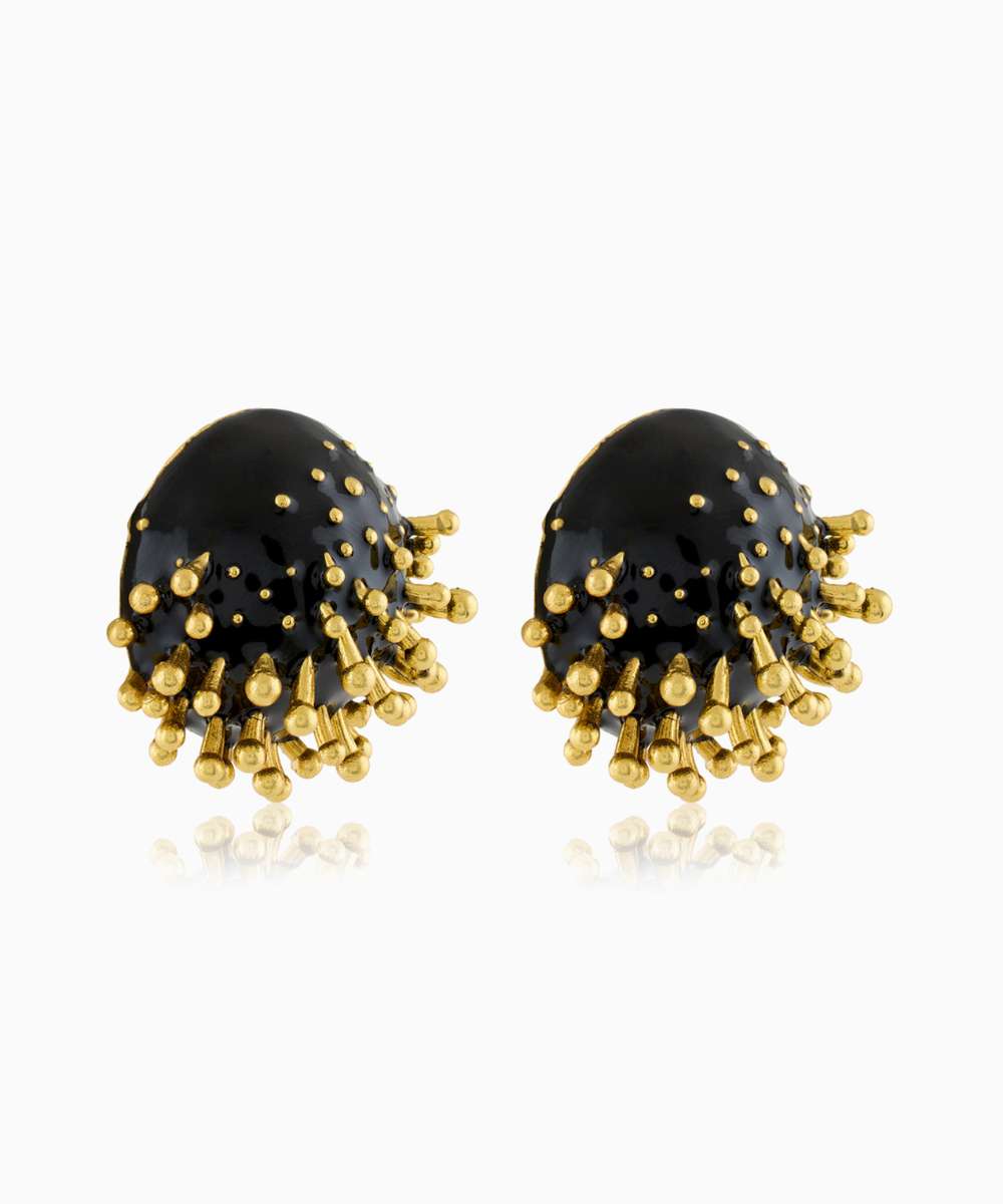 Elevate your style with our Vine Round Studs from the Chic Amour Collection. These black enamel studs are a statement piece that will make you stand out at any event. From desk to dinner, these versatile studs are the perfect addition to your jewelry collection. Embrace the love affair with Paris and add a touch of elegance to your AM to PM look.