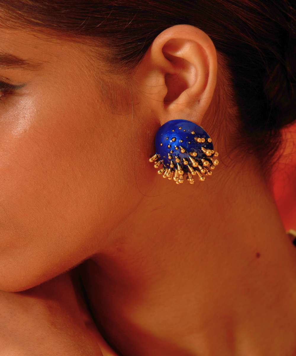 Bring a touch of Parisian flair to your style with the Vine Round Studs in blue. Their playful round design and soft blur effect create a dreamy vibe that’s perfect for adding a subtle pop of color. These studs are ideal for anyone looking to brighten their day with a fun and chic accessory.