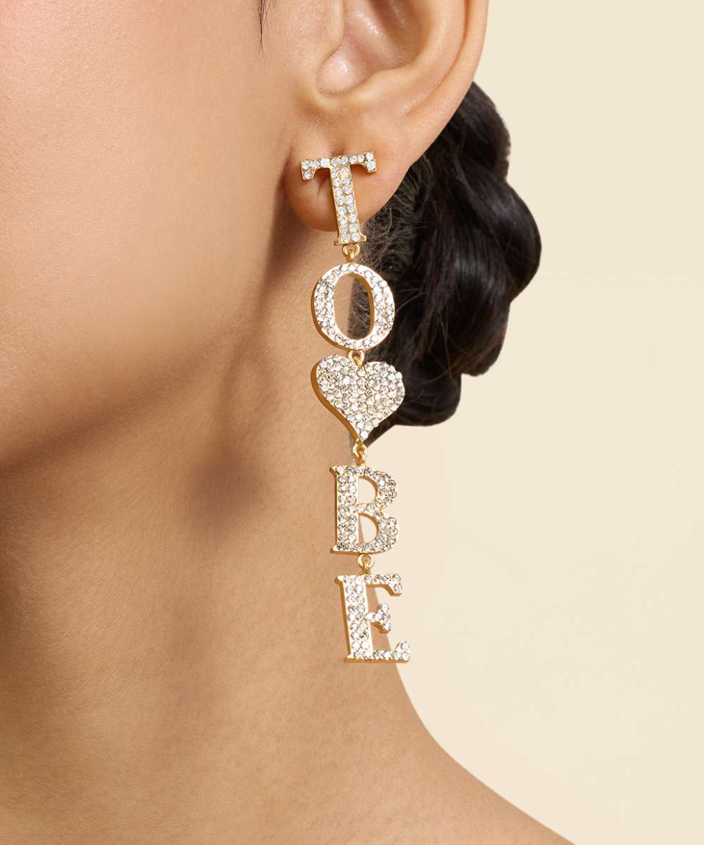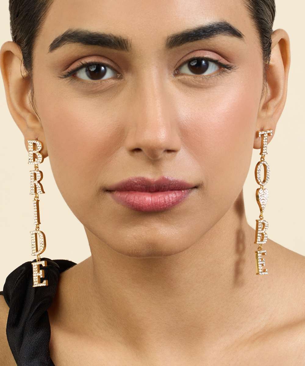 Crafted with care, these earrings feature a luxurious 22kt gold plating that gleams with sophistication. Delicate rhinestones are intricately set, adding a touch of sparkle that mirrors the joy of your big day. Lightweight and versatile, they ensure you stay effortlessly radiant from the aisle to the dance floor.