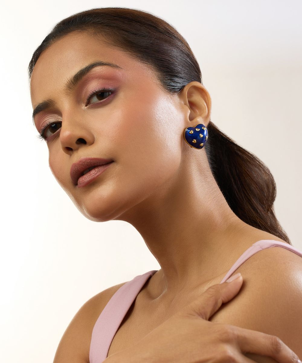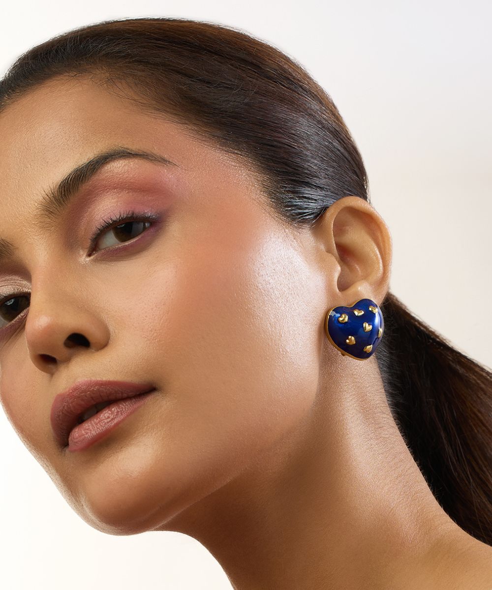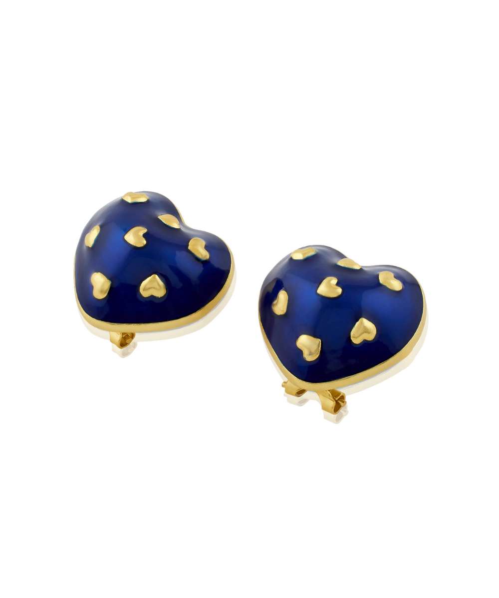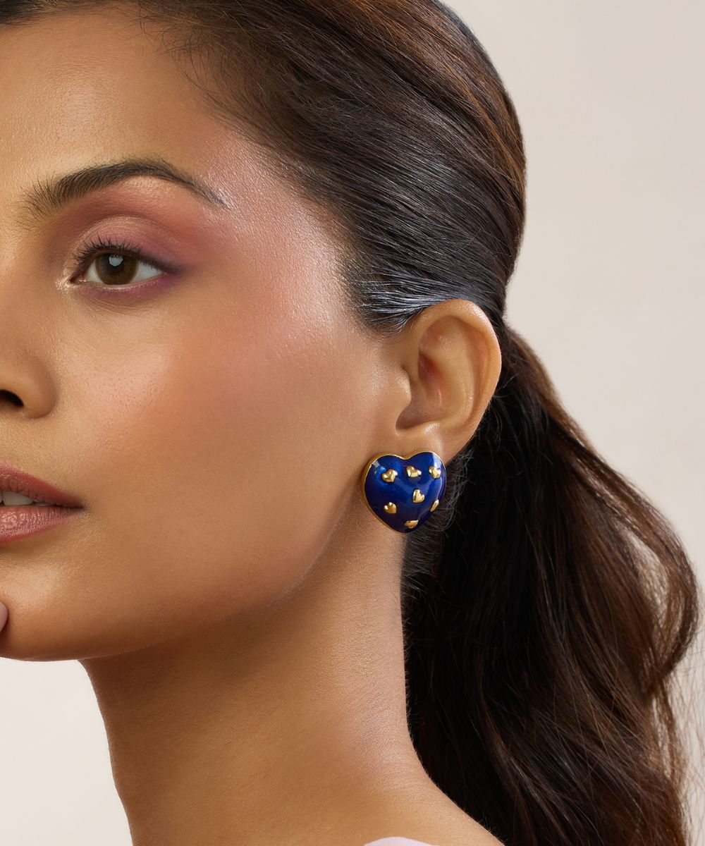Amour Enamel Heart Studs (Royal Blue)