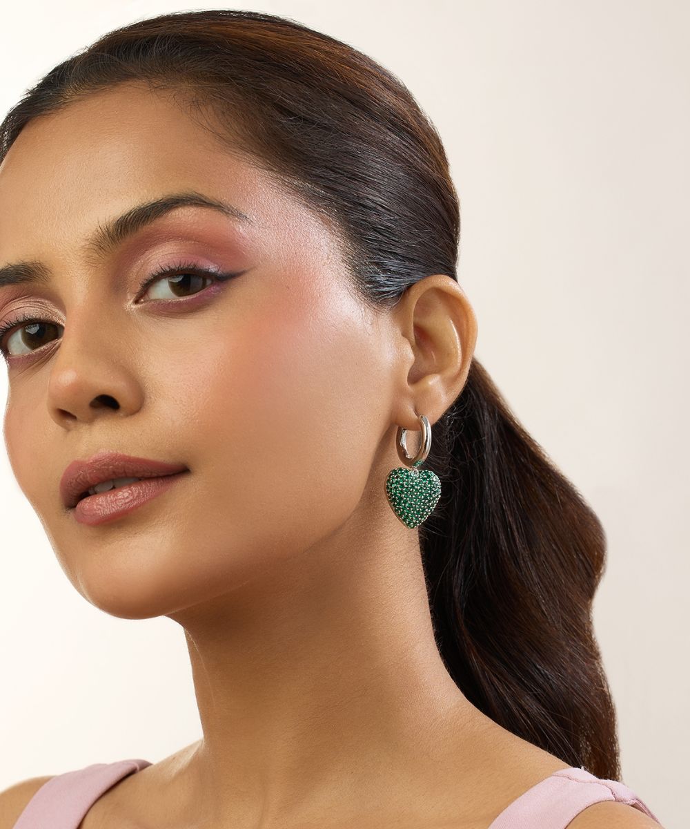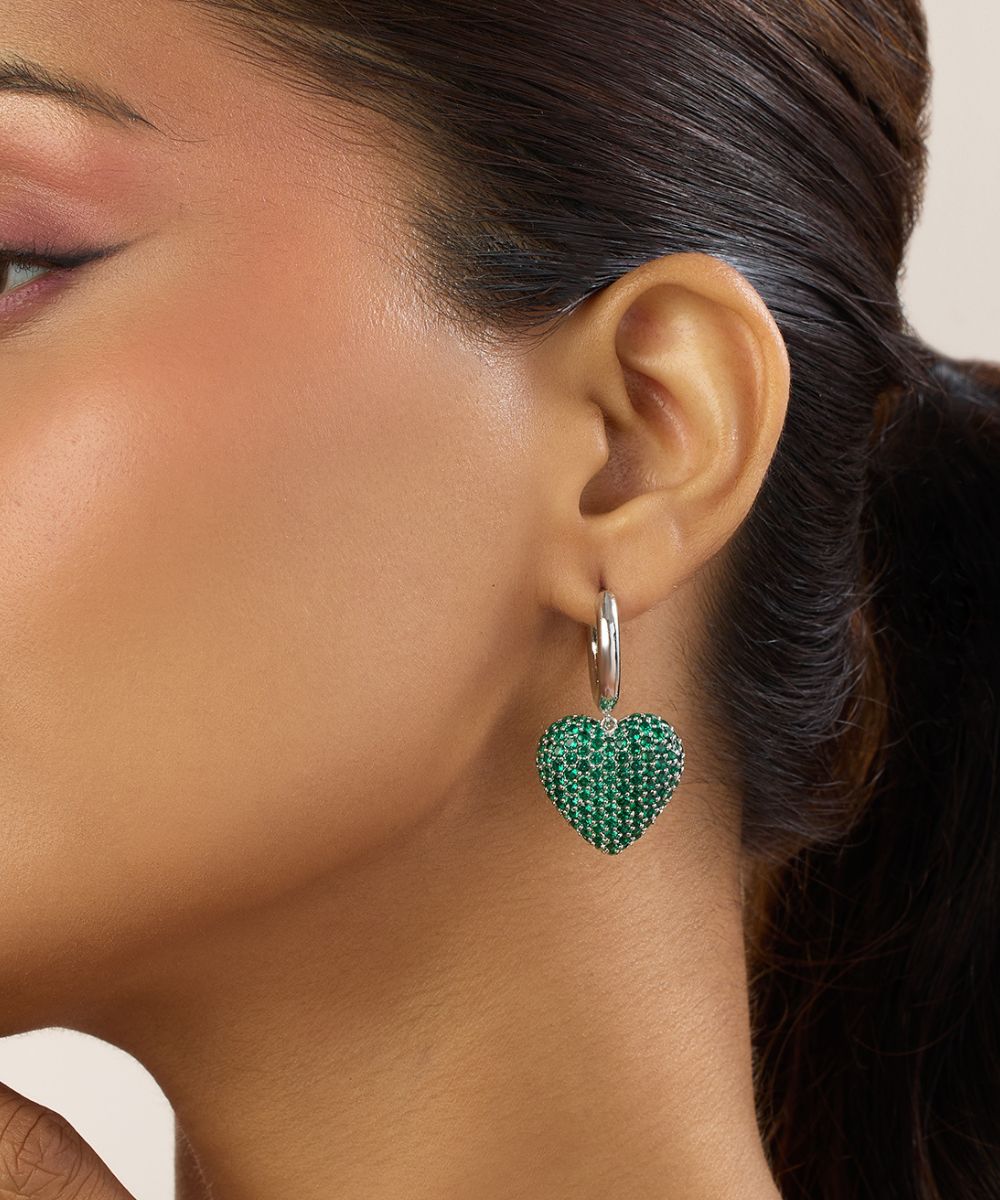 Embrace the essence of love with our Diamond Heart Hoops in green. These hoops redefine elegance in simplicity, featuring a classic heart design adorned with a radiant diamond. Uncomplicated yet deeply meaningful, wear them as a tender reminder that love is beautifully expressed in the simplest of gestures.