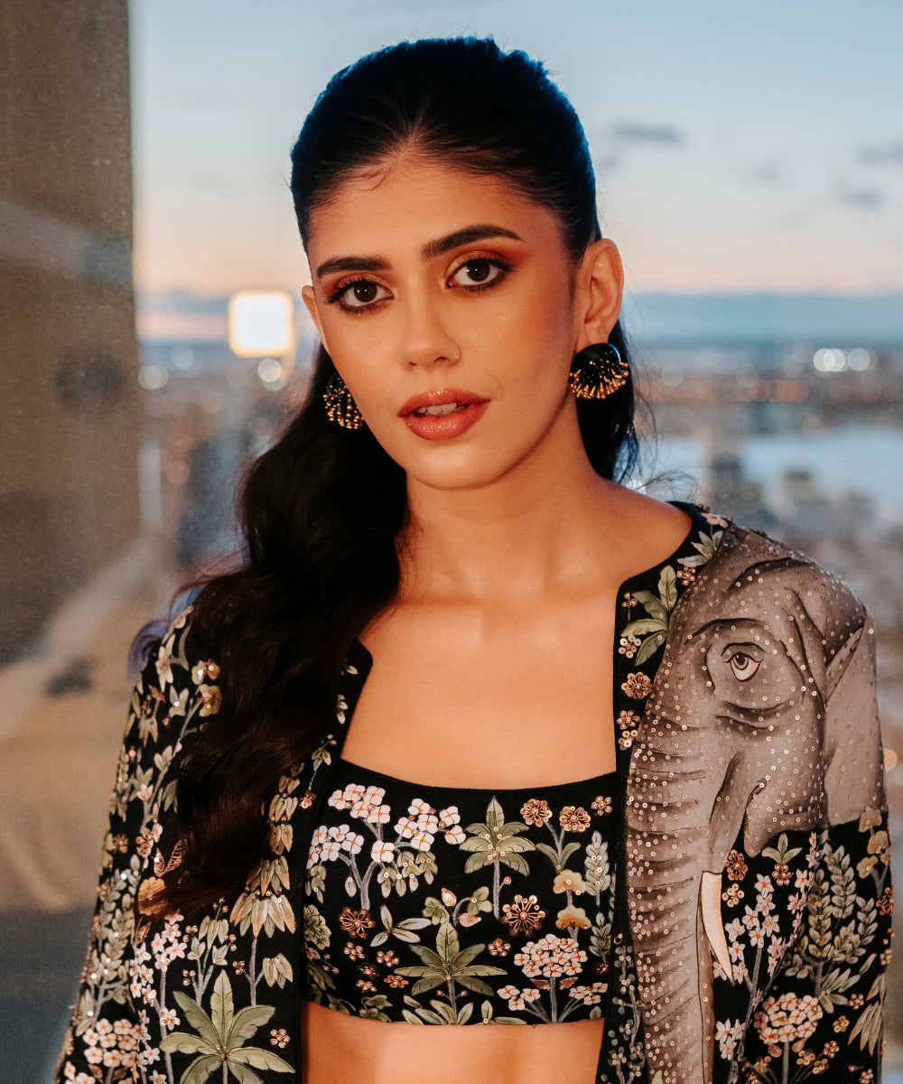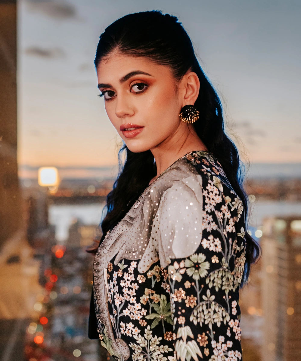 Sanjana Sanghi Wearing MNSH Vine Round Studs (Black)