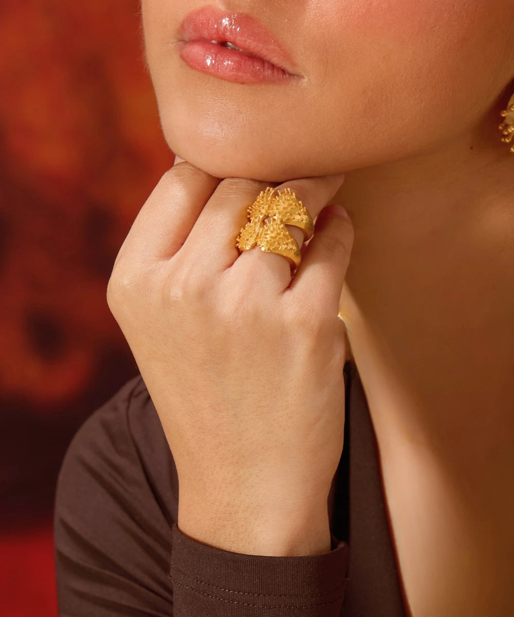 Introducing the chic and exclusive Vine Double Ring from our luxurious Chic Amour Collection. Elevate your style with this trendy yet sophisticated piece. Statement-y and fun, it's the perfect go-to for all your elegant occasions. Complete your look with this must-have jewellery piece.