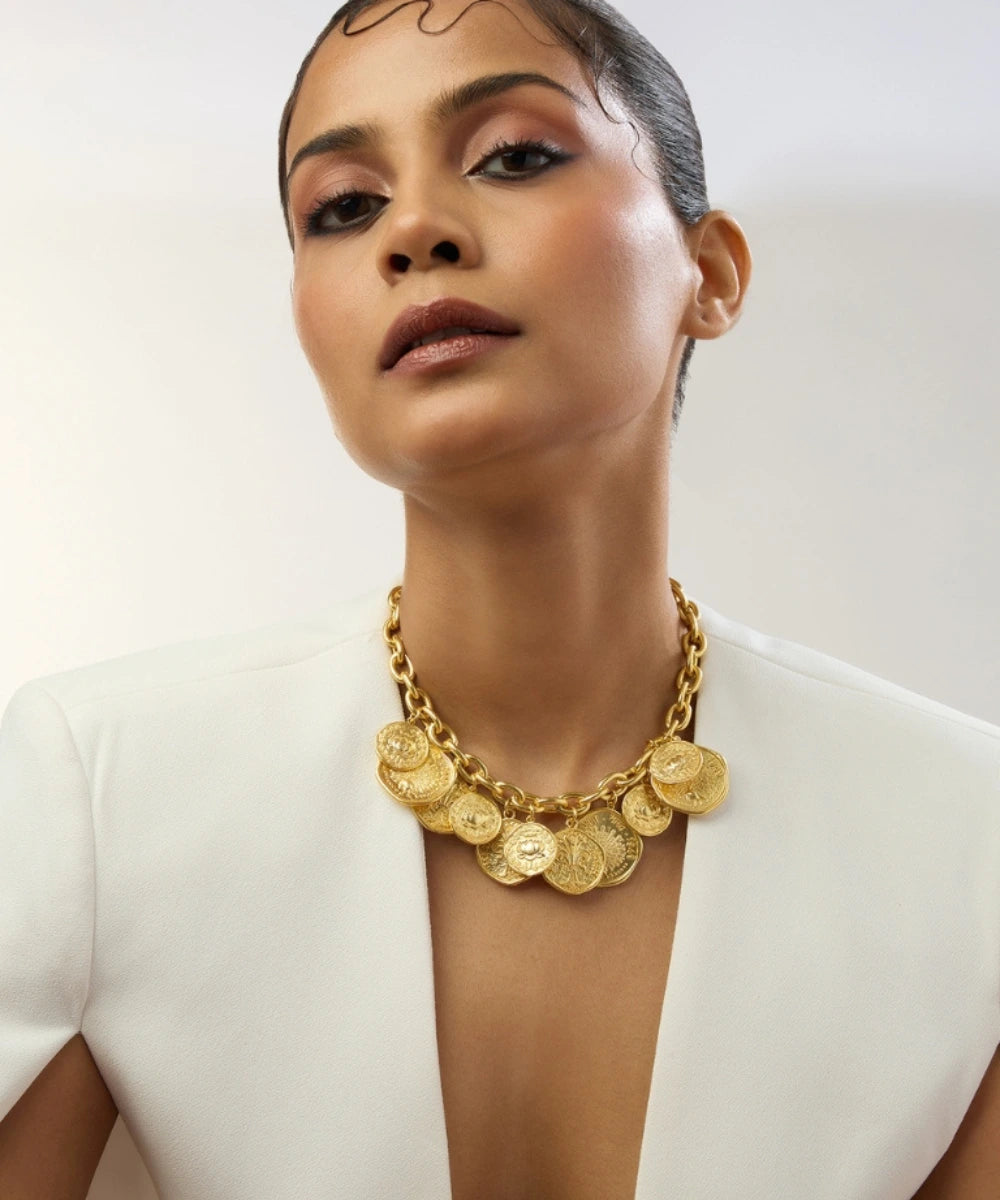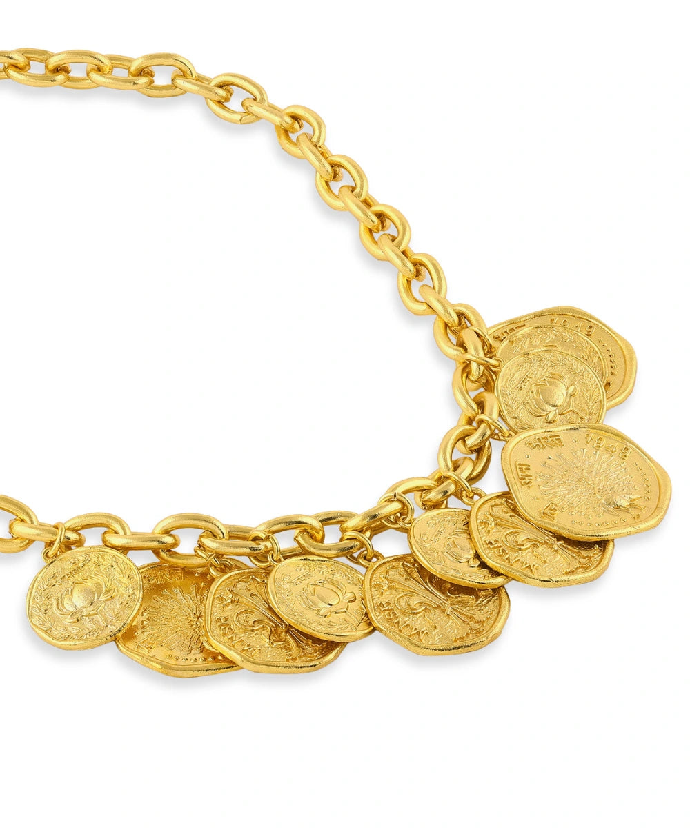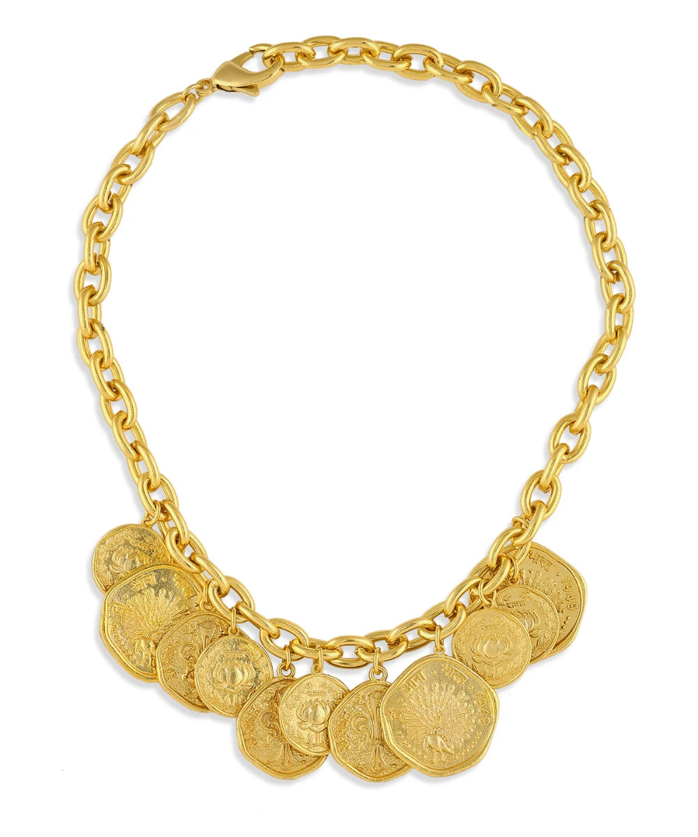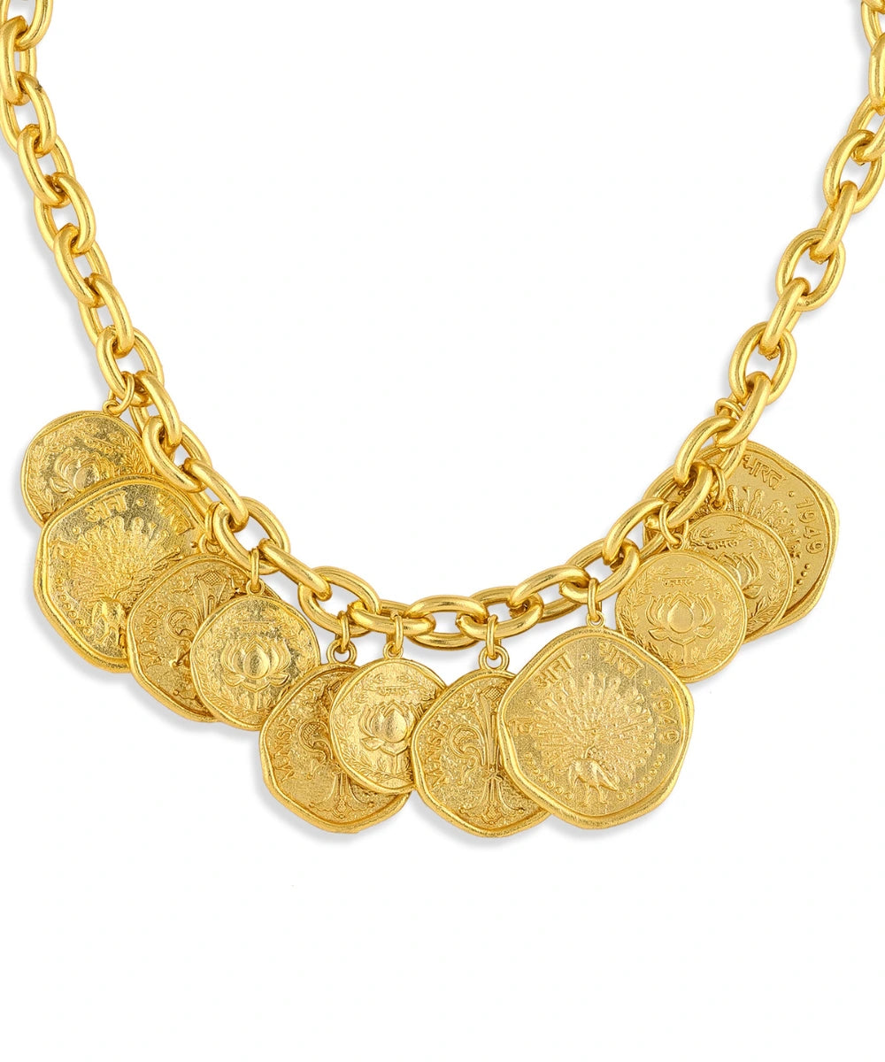 Channel the strength and grace of Indian heritage with our Shakti Necklace. The lotus coin symbolizes resilience and power, while the intricate peacock design adds elegance. Elevate your style and pay homage to the culture with this exclusive Mor Kamal Statement Chain.