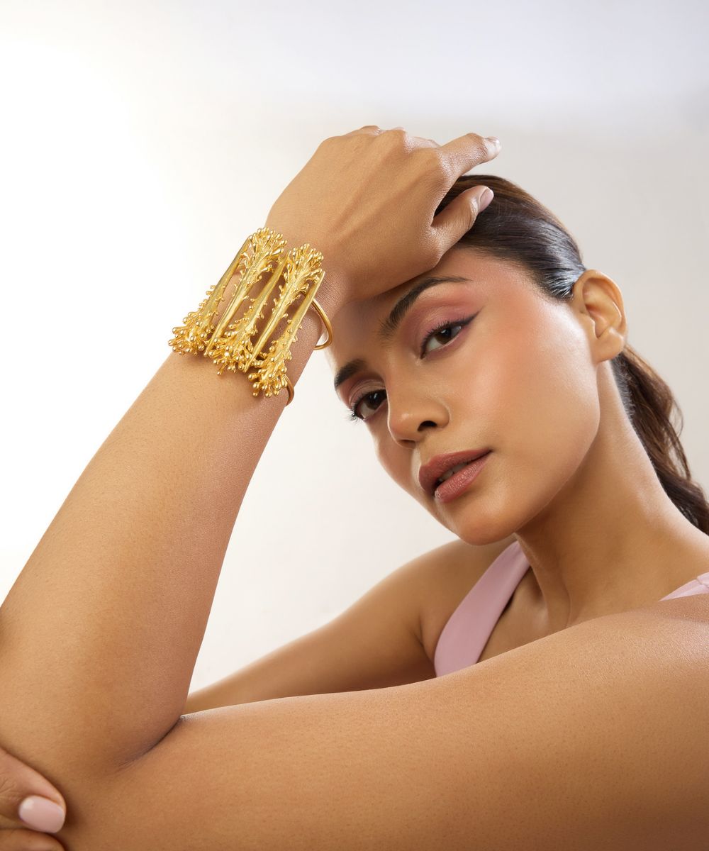 Indulge in the ultimate luxury with our Vine Statement Cuff from the Chic Amour Collection. This exquisite piece will transport you to a love affair with Paris, making a statement at any event. Elevate your style with this go-to jewellery piece.