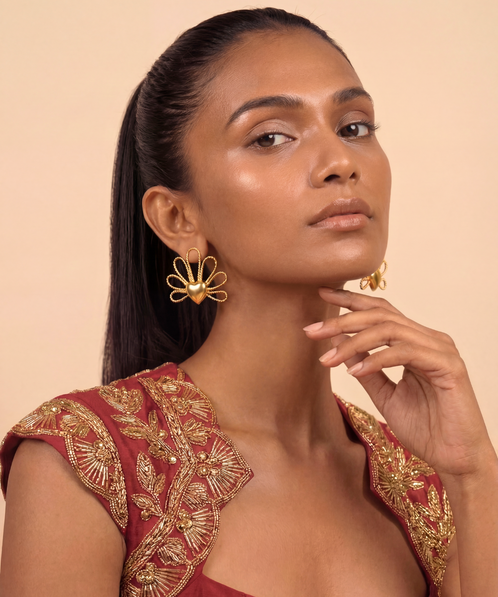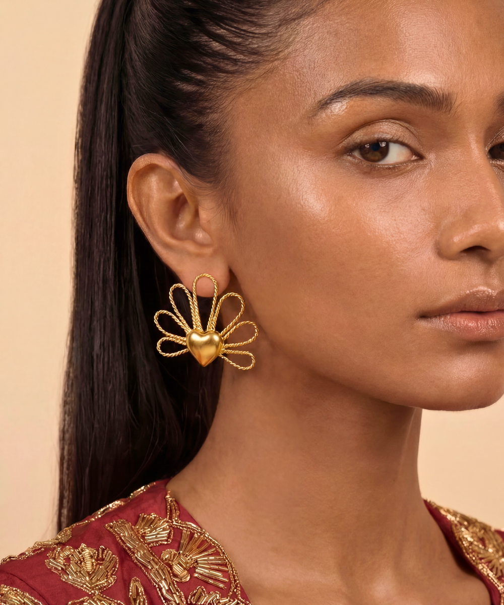 Add some flower power to your look with BLOSSOM STUDS! Featuring a contemporary flower design, inspired by the beautiful GULABO flower. These studs are sure to make a statement and elevate any outfit.