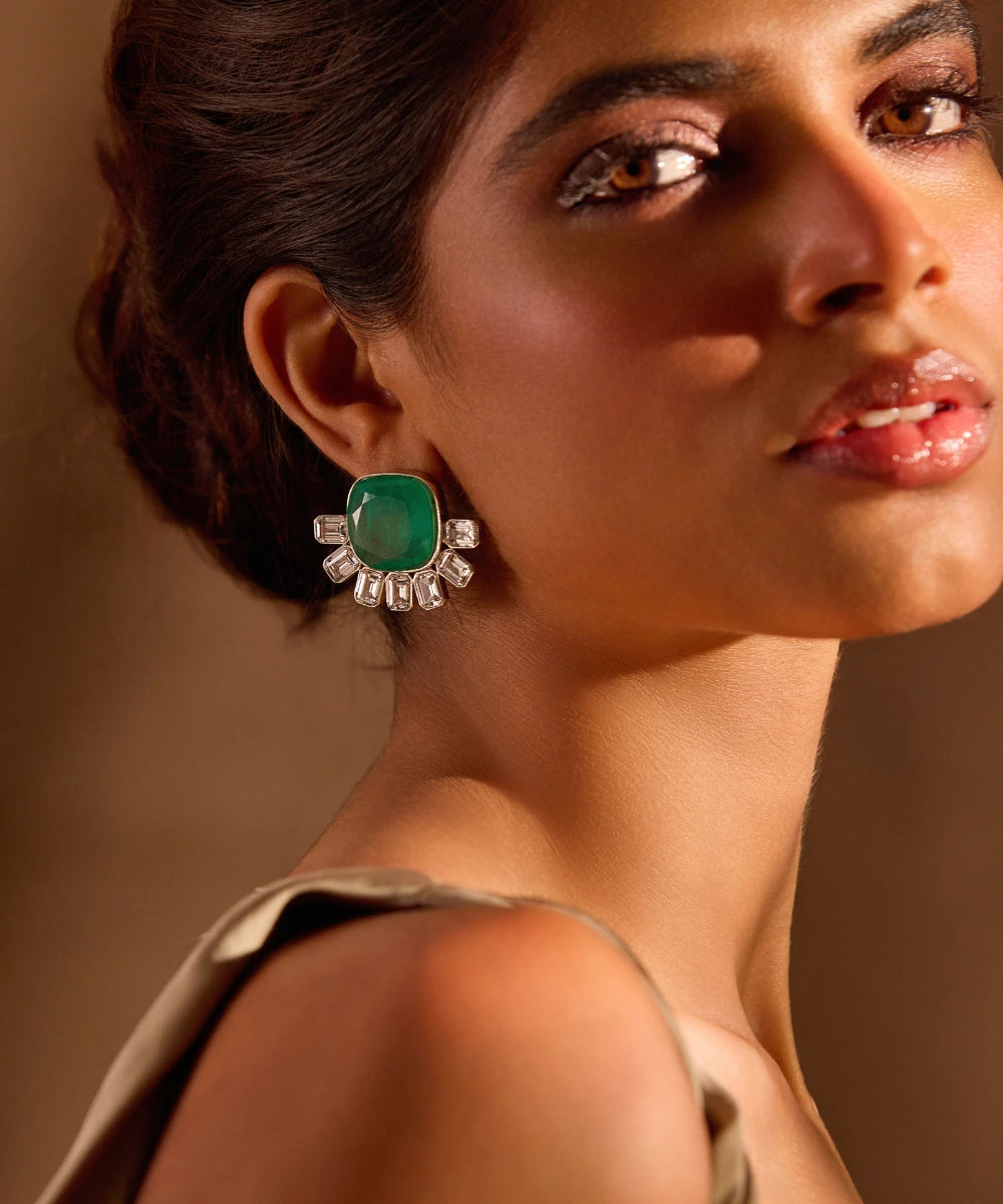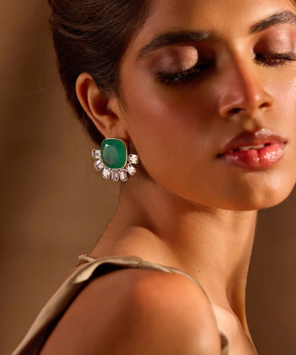 Discover the allure of genuine emerald elegance with our Double Emerald Studs a statement piece that commands attention without demanding it. These captivating earrings showcase the mesmerizing green brilliance of emeralds, instantly elevating your presence whether you're closing a business deal or attending an evening soirée. Investment-worthy and timelessly chic, they're the signature accessory discerning individuals choose to express their refined taste. Make emerald your signature stone and experience the transformative power of authentic luxury.