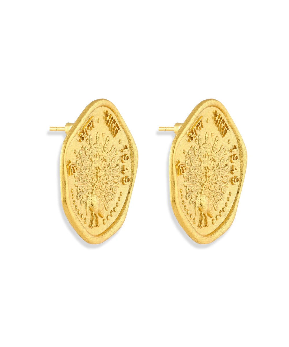 Add a touch of heritage and charm to your style with our Mor Coin Studs! Featuring a stunning peacock design, these bold studs exude grace and elegance. Perfect for adding a unique touch to any outfit.