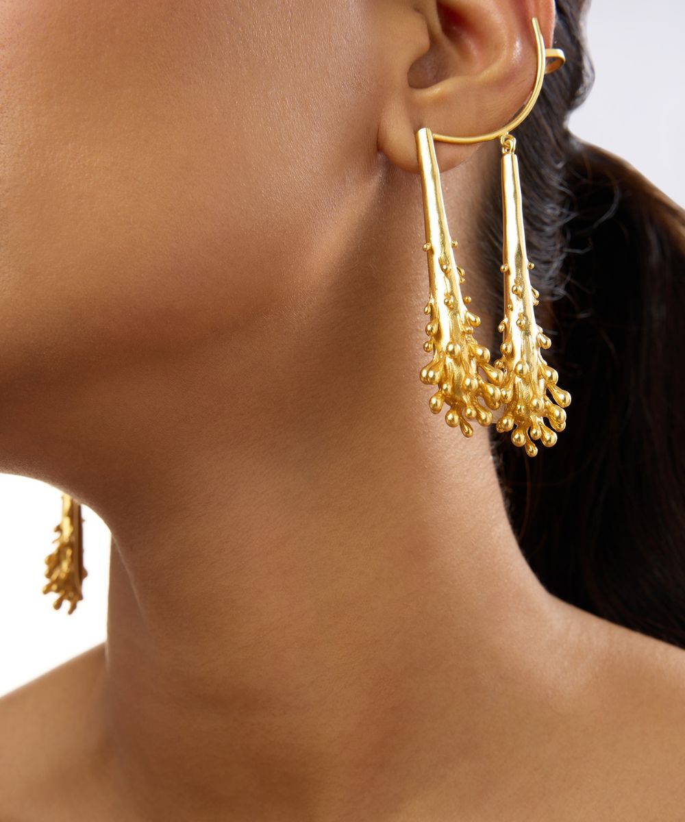 The Vine Ear Cuff Dangler from our Chic Amour Collection exudes Parisian romance and is the perfect statement piece to make a statement at your next event. With its elegant design and intricate details, these earrings will truly make you stand out in a crowd. Elevate your style with this exclusive piece.
