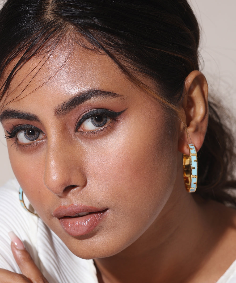 Like the sun's rays, these beautifully designed enamel hoops brighten up your day. The timeless intricate design and vibrant color makes it perfect for day or night. Light weight & easy to wear these hoops are quintessential piece of jewellery in every wardrobe!
