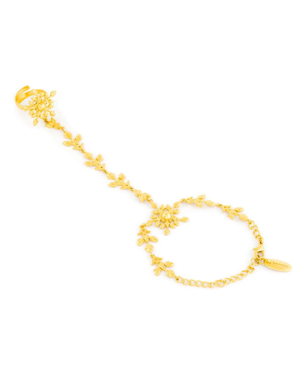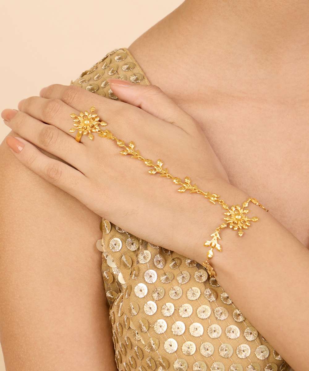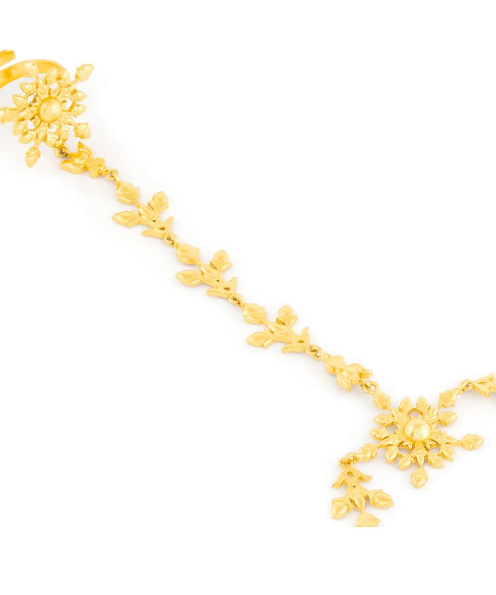 Add some flower power to your look with GULABO TULIP HAND HARNESS! Featuring a contemporary flower design, inspired by the beautiful GULABO flower. These studs are sure to make a statement and elevate any outfit.