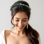 Be the envy of the party with this flashy Green Rhinestone Hairband! Shine brighter than a diamond and be the highlight of the room with this dazzling accessory. Ooh, la la! Get the perfect 'do with a hint of glamour and a sprinkle of sparkle.