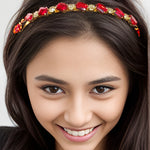 Look oh-so-chic in this Red & Gold Rhinestone Hairband! The perfect accessory for any special occasion or just for fun, this trendy headband features glimmering rhinestones that make a fabulous statement. Sparkle and shine - but not too much - with this versatile hairpiece!