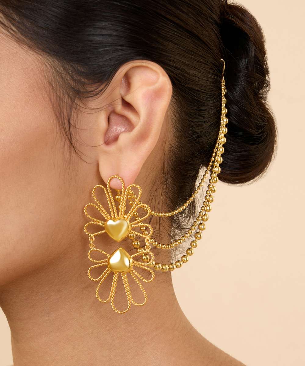 Add some flower power to your look with GULABO HAIR CHAIN EARRINGS! Featuring a contemporary flower design, inspired by the beautiful GULABO flower. These studs are sure to make a statement and elevate any outfit.