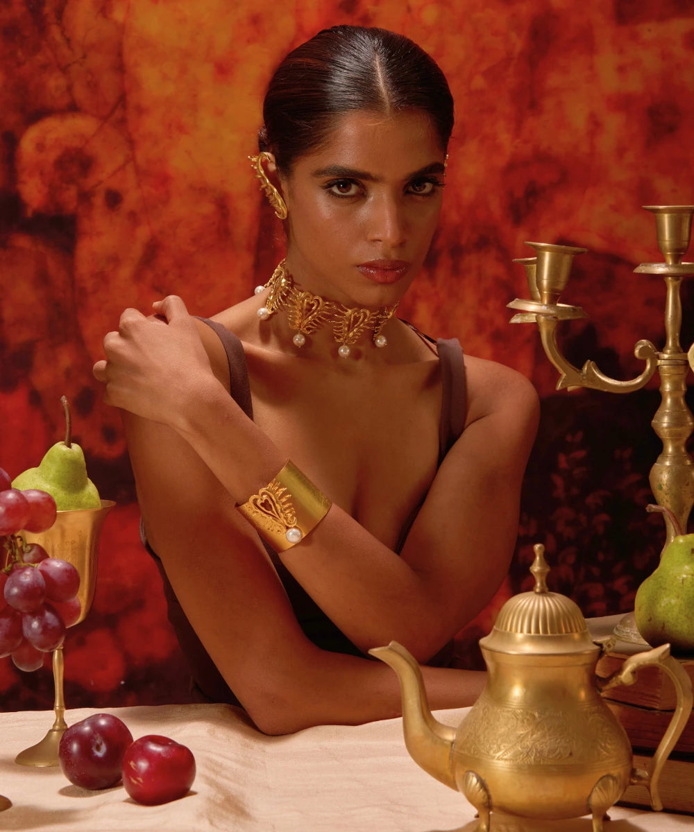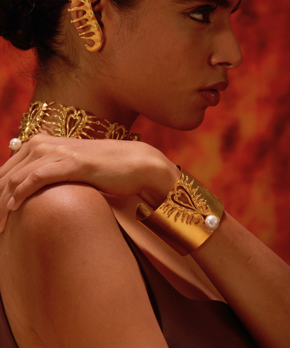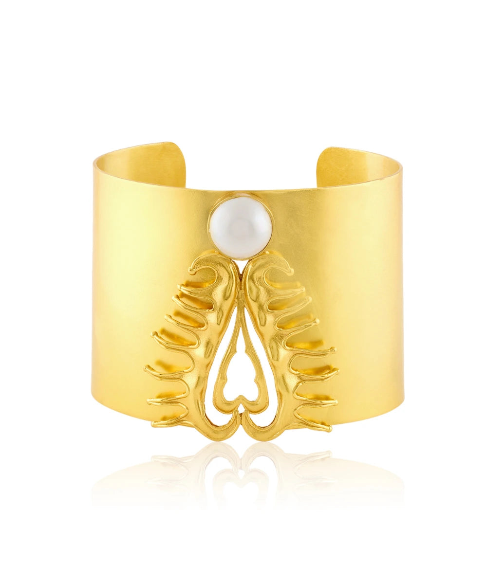 Elevate your outfit with our Amour Heart Statement Cuff from our Chic Amour Collection. Channel your inner Parisian with this statement piece to make a lasting impression at any event. A go-to jewelry piece that's both fun and trendy, with delicate pearl detailing.