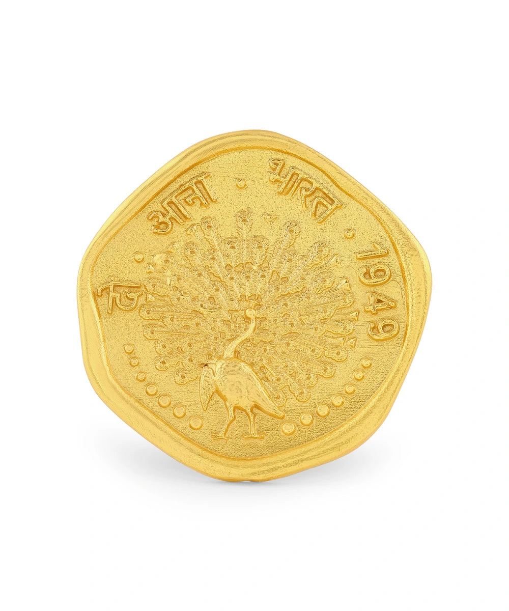 Elevate your style with our Mor Coin Ring, featuring a stunning peacock design that embodies grace and elegance. A true ode to Indian heritage and history, this ring will add a touch of sophistication to any outfit. Embrace exclusivity and beauty with this luxurious piece.