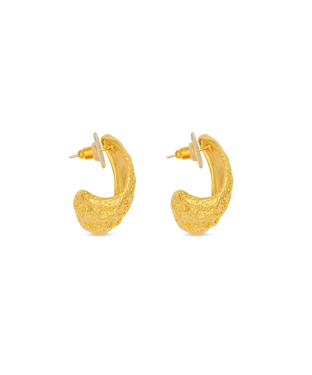 For a look that stands out, try this Half Textured Gold Hoop! Its unique texture and eye-catching gold color will make you the envy of everyone around. Add the perfect touch of elegance to your look - you won't regret it!