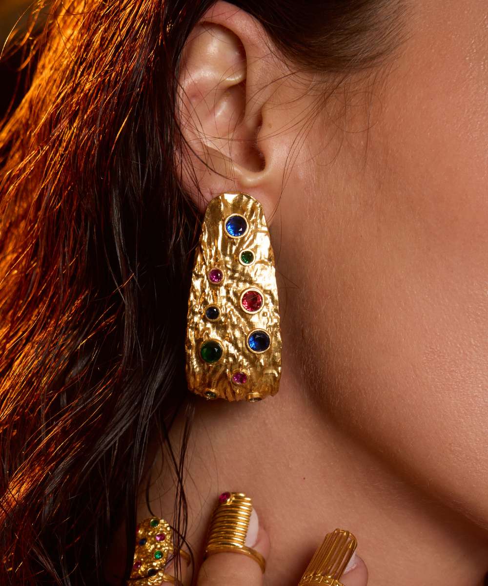 Material: 22kt gold plated brass |Colored Stones