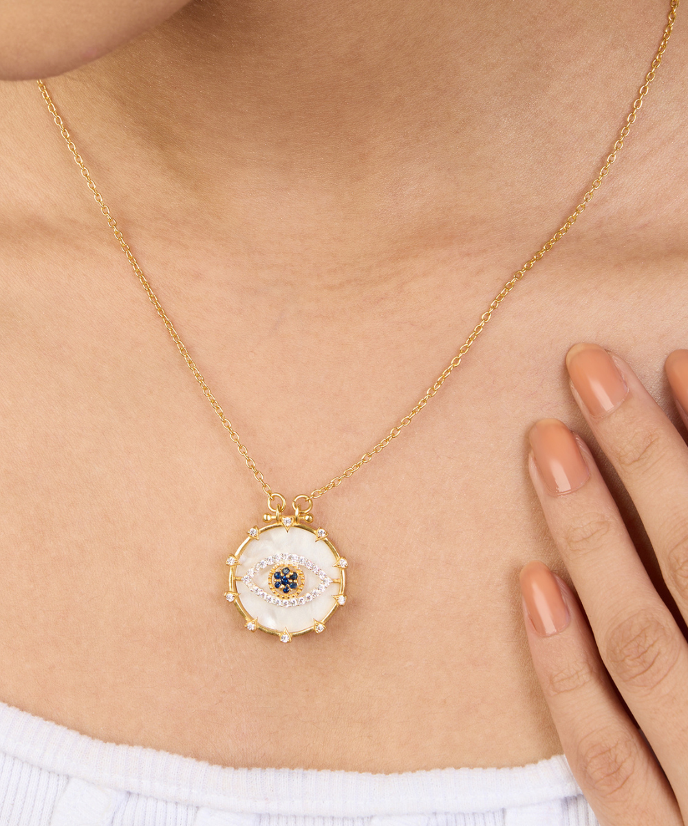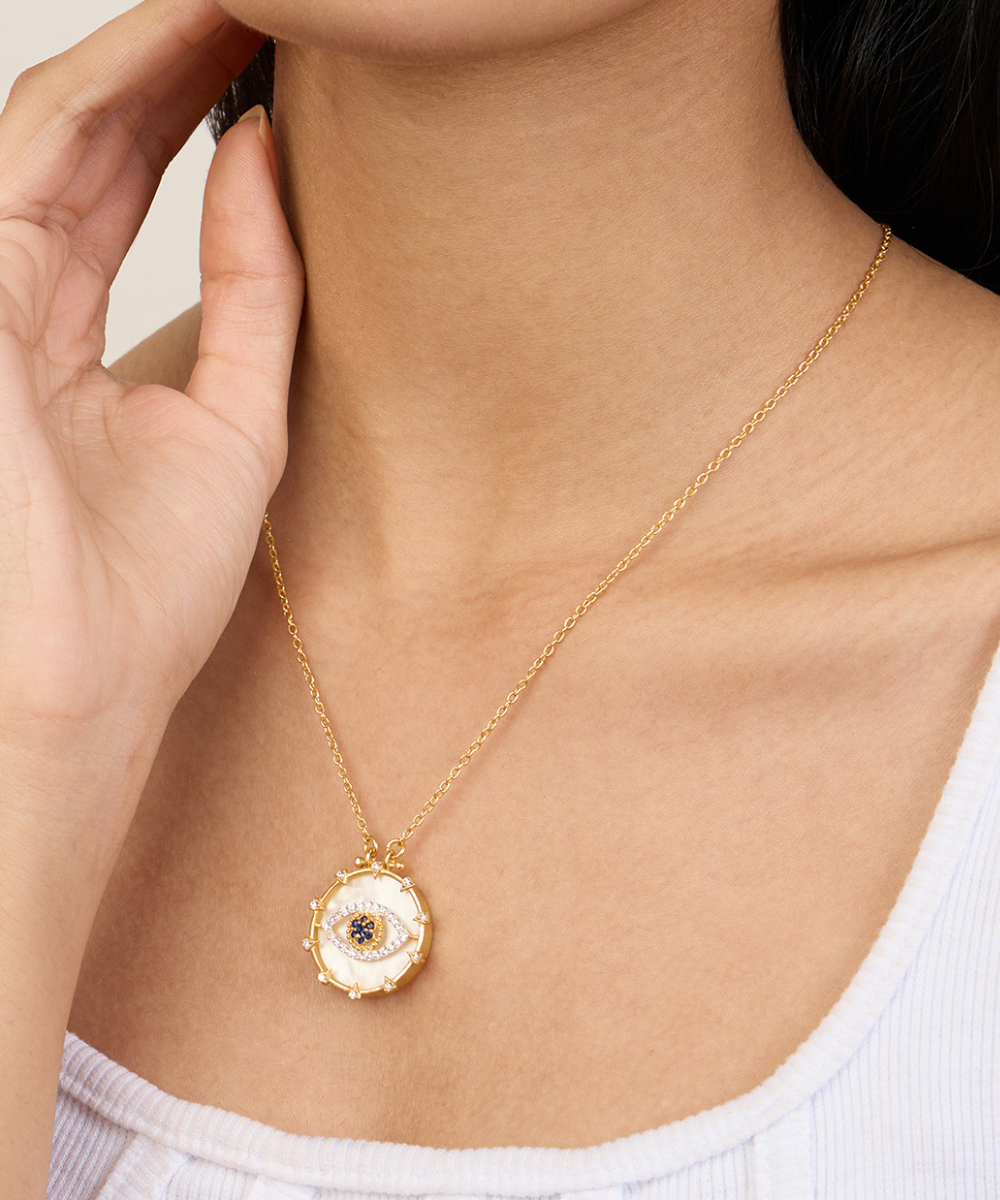 Protect yourself from negative vibes with our Evil eye Necklace. This 18kt gold plated accessory is not only light weight, but also brings positivity to your life. Don't let anything weigh you down, wear our evil eye collection for some extra good vibes!