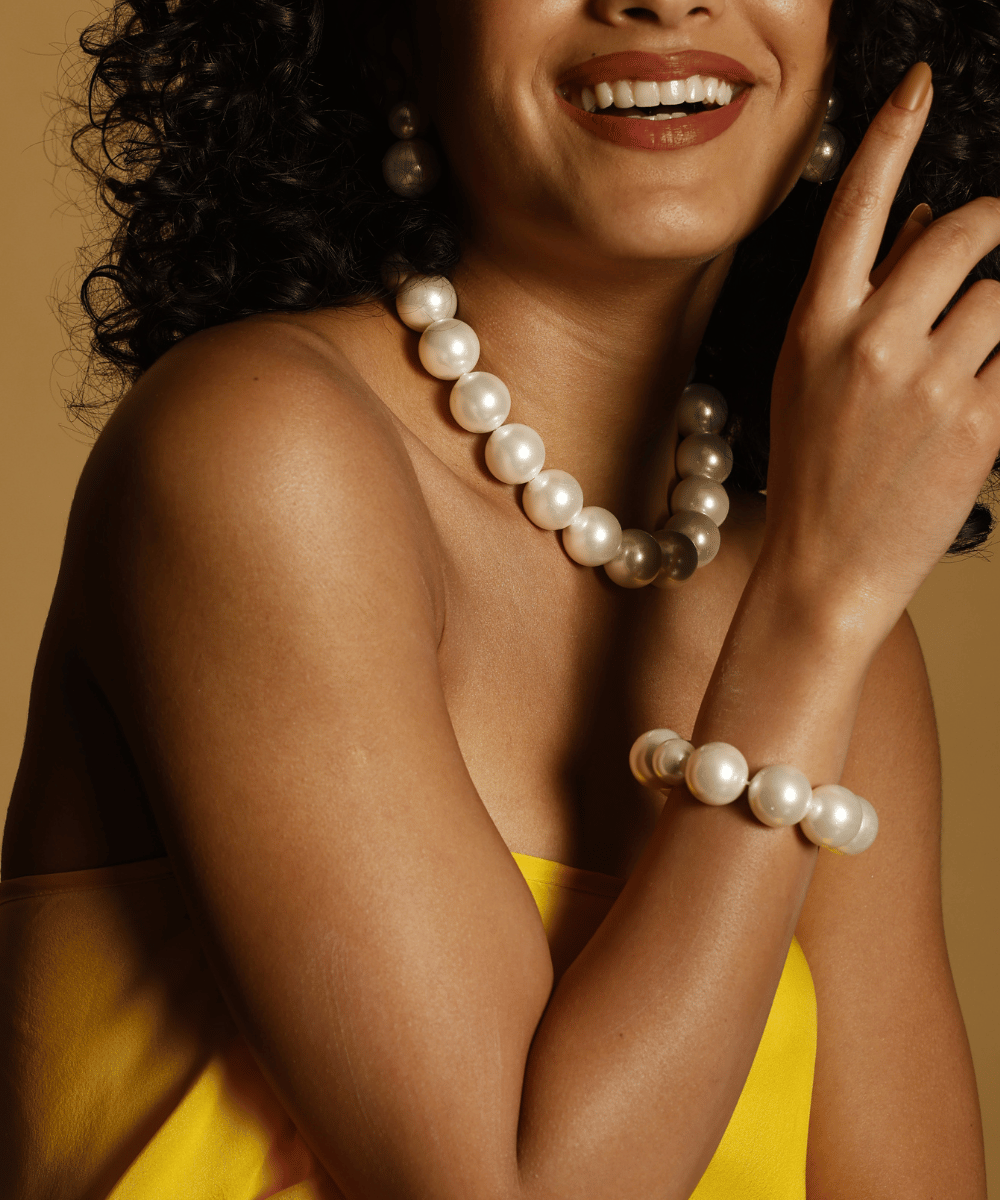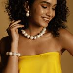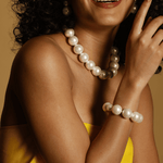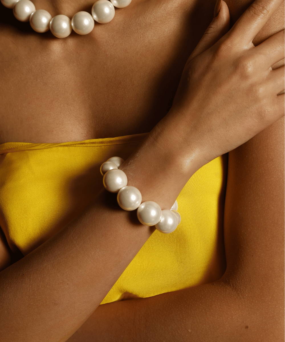 Get ready to turn heads with the Audrey Pearl Bracelet! This stunning piece features lustrous pearls that will add a touch of elegance to any outfit. This bracelet is perfect for a night out or everyday wear. Make a statement with the Audrey Pearl Bracelet.