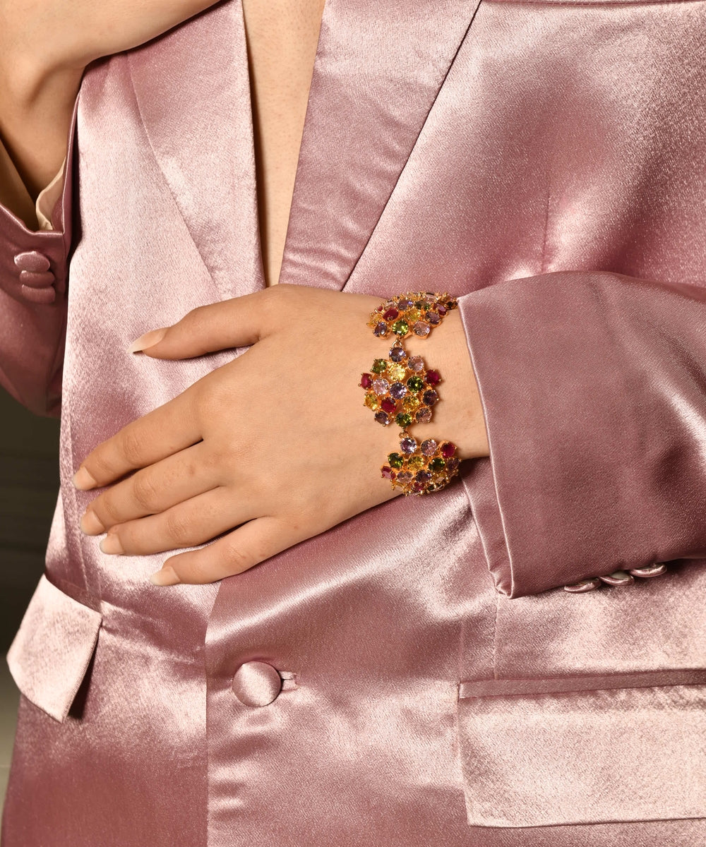 Western Chic Meets Party Glam! Get ready to steal the spotlight and set the trend with our Bauble Crystal Multi Color Bracelet! This fabulous piece is the ultimate fusion of elegance and fun, designed to elevate your style game for every occasion, be it a sizzling party night or a glamorous wedding affair.