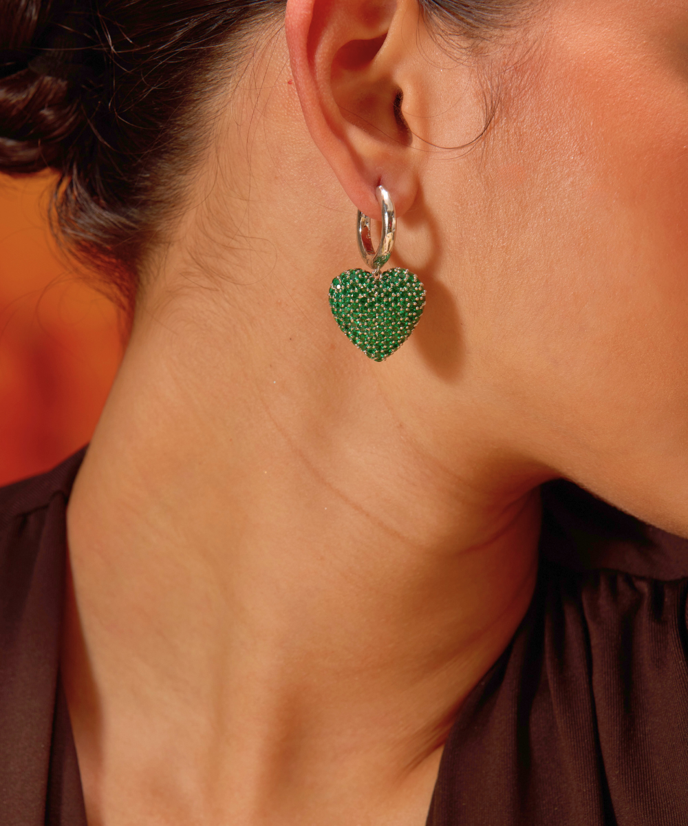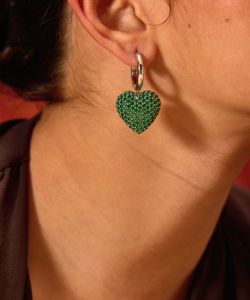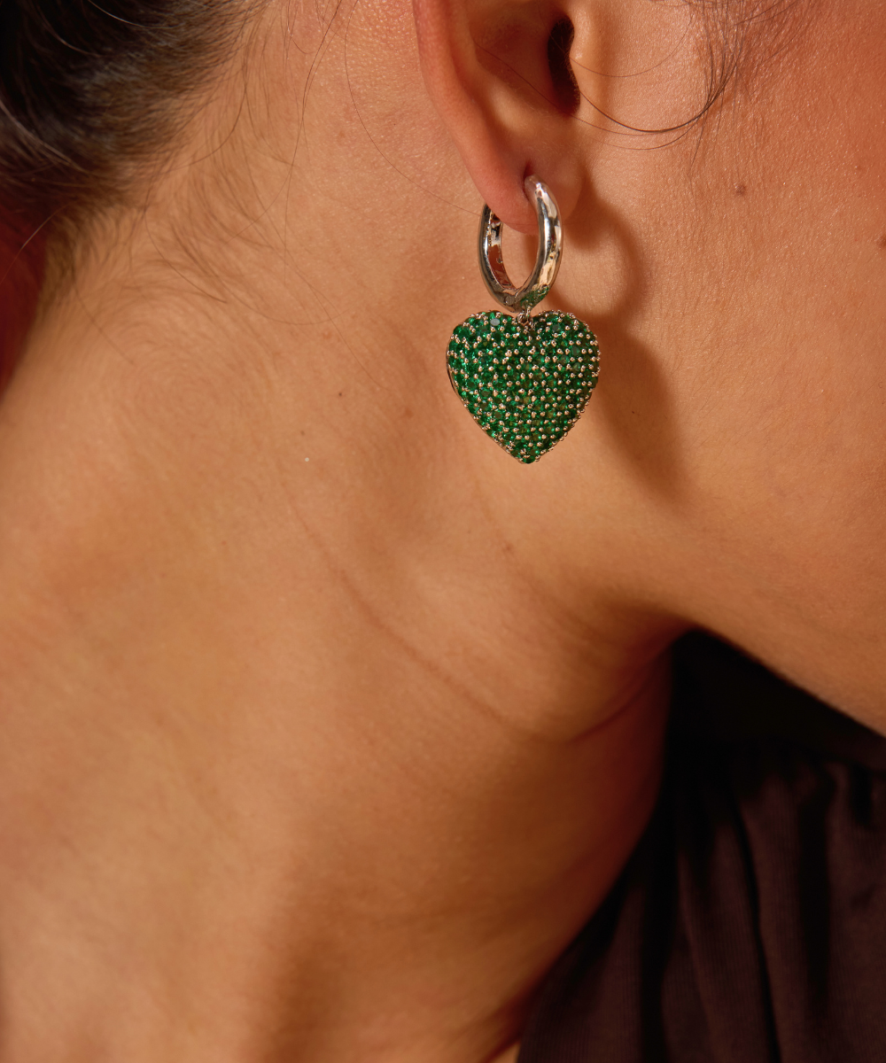 Embrace the essence of love with our Diamond Heart Hoops in green. These hoops redefine elegance in simplicity, featuring a classic heart design adorned with a radiant diamond. Uncomplicated yet deeply meaningful, wear them as a tender reminder that love is beautifully expressed in the simplest of gestures.
