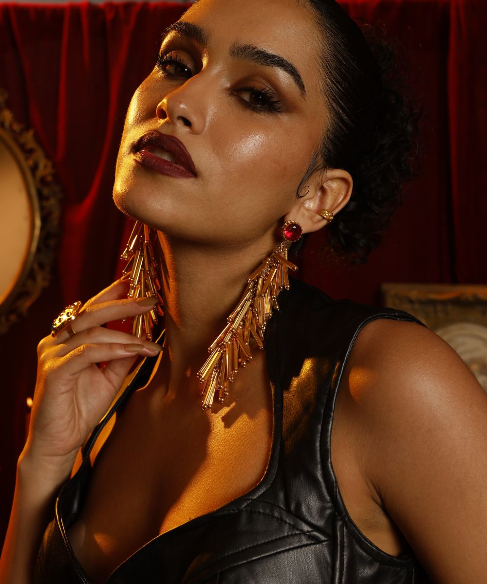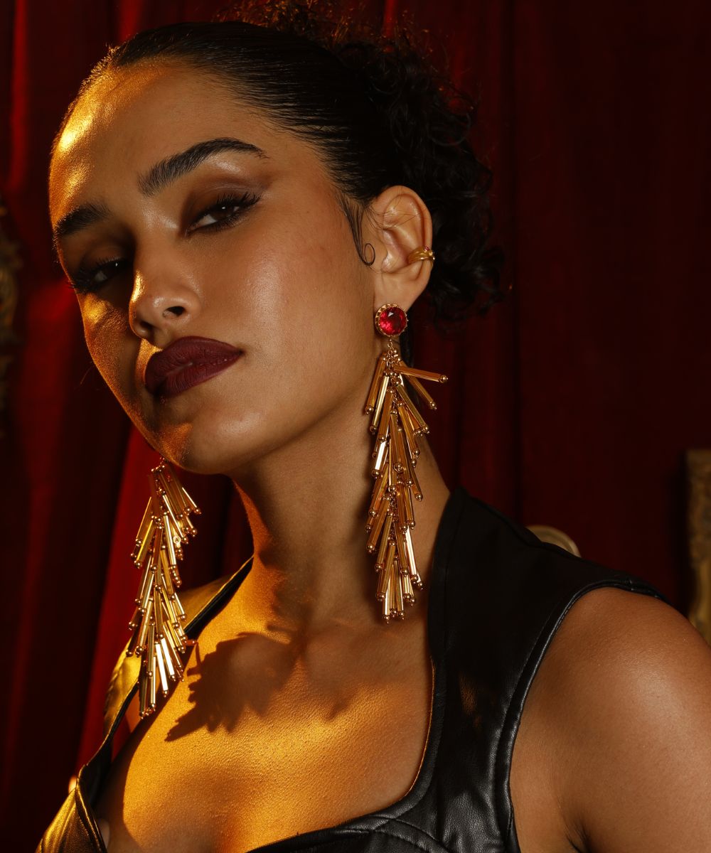 Indulge in luxury with our Mob Wife Tassel Earrings. Each earring comes adorned with a sparkle, exuding elegance and sophistication. Complete with a Velvet Choker and Gold Chain, these earrings are perfect for any extravagant event. Elevate your style and make a statement with our Mob Wife collection.