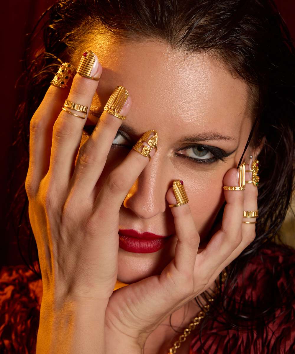 Introducing The Carmela Studded Nail Ring Set, a powerful and bold addition to your jewelry collection. These fashionable nail rings exude strength and elegance, making a statement with every gesture. Don't shy away from standing out with this mob wife-inspired set.