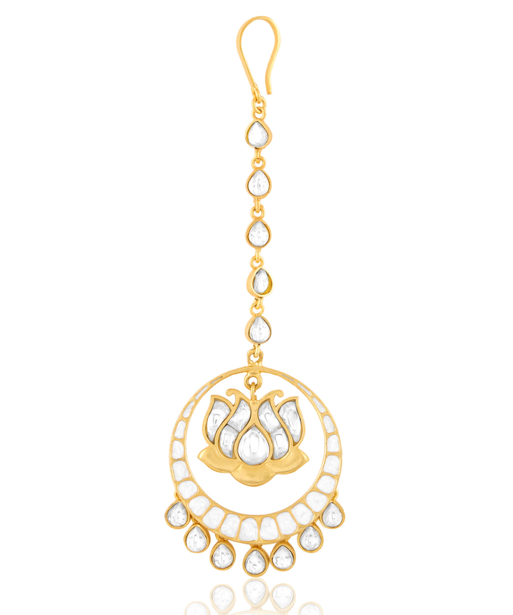 Make a bold statement with the Kamal Polki Maangtika, a striking piece that blends timeless tradition with fearless elegance. Its intricate Polki stones capture the light, drawing attention to your every move. Perfect for those who dare to stand out, this maangtika adds a powerful touch of heritage and glamour to your look. Elevate your style with confidence and let your presence be unforgettable.