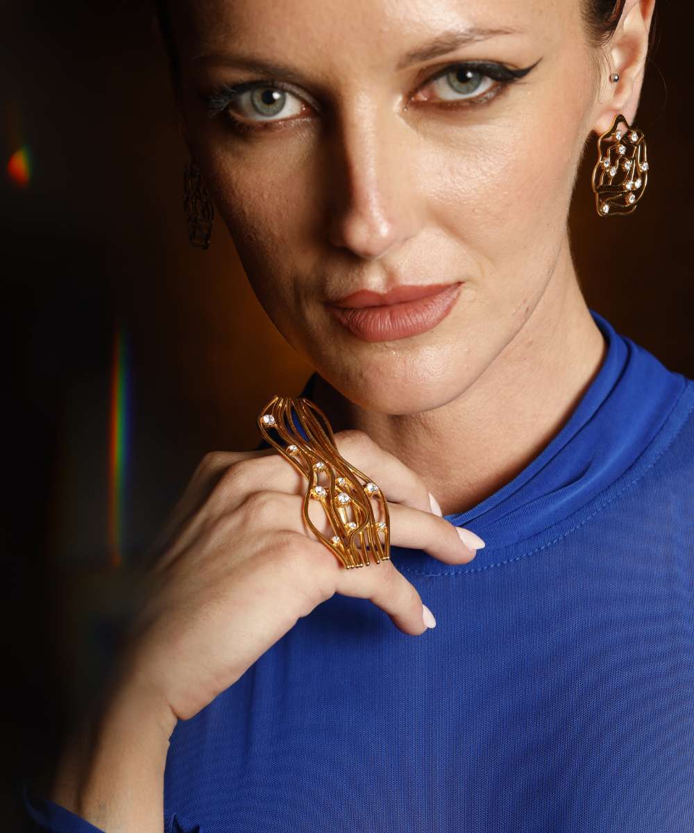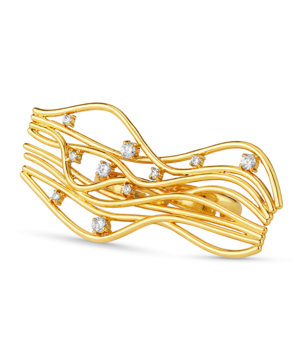 Introducing Flow Two Finger ring. Elevate your personal style with this versatile and luxurious piece that effortlessly transitions from everyday chic to festive glamour. Make a statement and add a modern twist to every look. Uniquely yours!