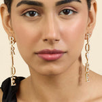 Crafted with care, these earrings feature a luxurious 22kt gold plating that gleams with sophistication. Delicate rhinestones are intricately set, adding a touch of sparkle that mirrors the joy of your big day. Lightweight and versatile, they ensure you stay effortlessly radiant from the aisle to the dance floor.