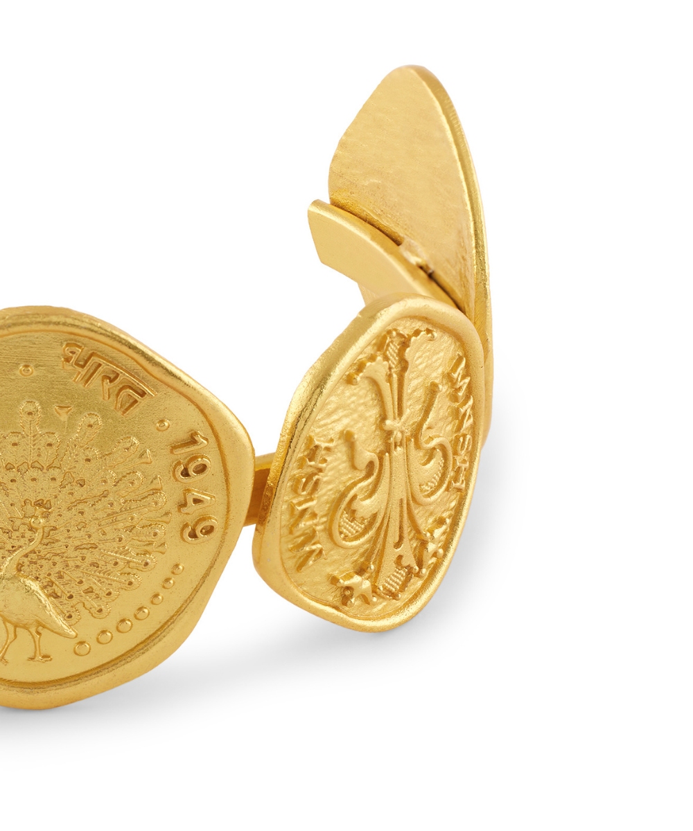 The MOR SHAKTI CUFF from the Shakti Coin Collection beautifully blends tradition with contemporary design. Featuring symbols like the Lotus, representing purity and growth, and the Peacock, embodying confidence and strength, this cuff is a celebration of timeless elegance and cultural heritage. Wear it as a powerful reminder that Shakti is not just power—it is you.