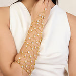 Get ready to sparkle and shine at your next party with the Rhinestone Jaal Hand Harness Gold Glove! With its dazzling rhinestones and sleek design, this glove is the perfect accessory to elevate your party outfit. Don't just dance, light up the dance floor this party season essential.