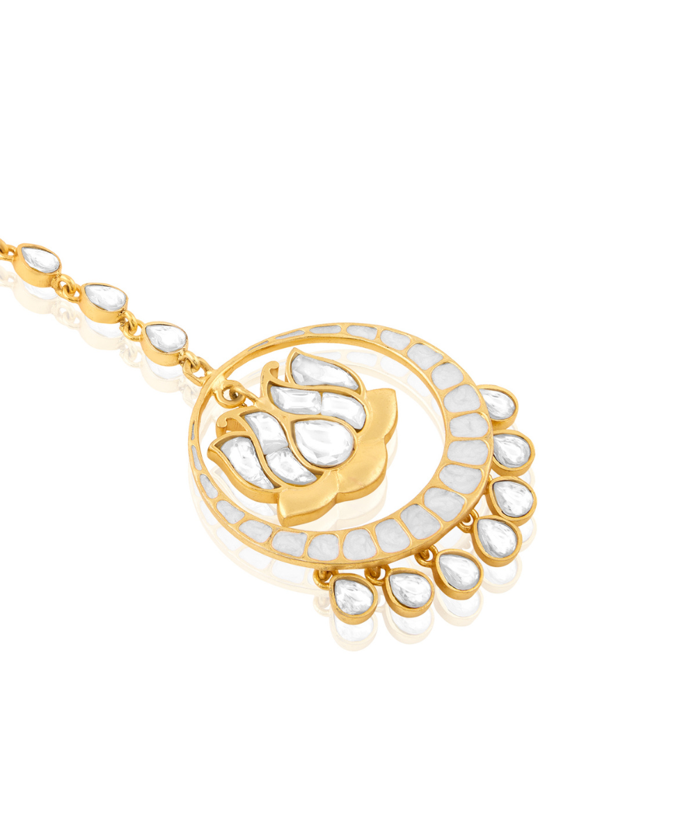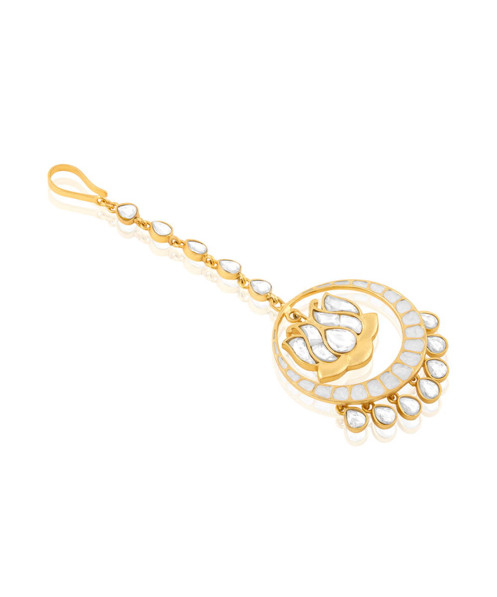 Make a bold statement with the Kamal Polki Maangtika, a striking piece that blends timeless tradition with fearless elegance. Its intricate Polki stones capture the light, drawing attention to your every move. Perfect for those who dare to stand out, this maangtika adds a powerful touch of heritage and glamour to your look. Elevate your style with confidence and let your presence be unforgettable.