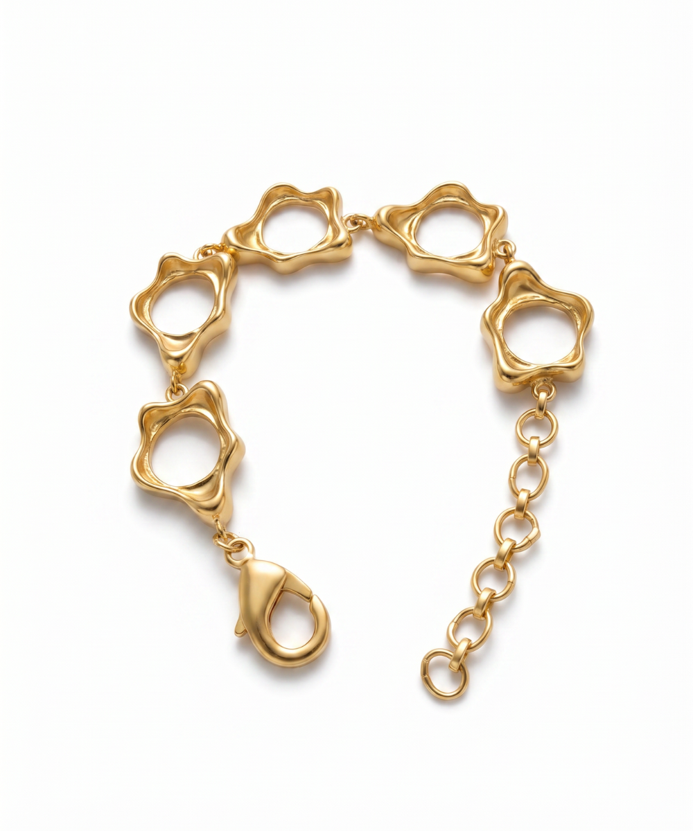 Embrace fluid elegance with this versatile bracelet that adapts to your style. Crafted for everyday wear, it features a smooth, flowing design that complements any outfit—from casual to sophisticated. The lightweight construction ensures comfortable all-day wear, while its timeless aesthetic makes it a perfect addition to your jewelry collection. Whether worn solo or layered with other pieces, this bracelet effortlessly transitions from day to night.