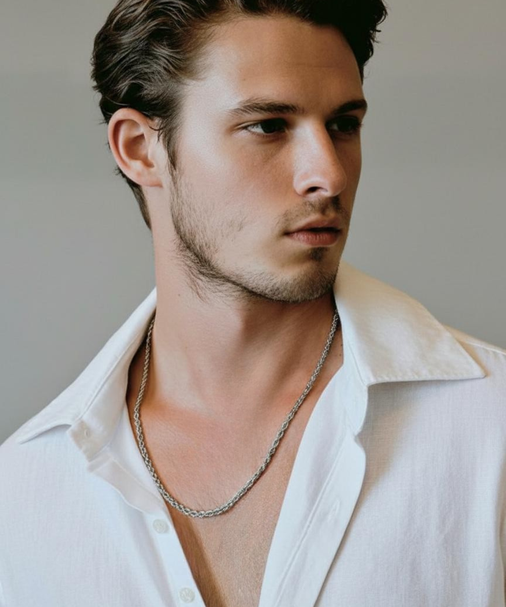 This finely crafted rope chain for men combines elegance and strength with its intricately woven design. Perfectly suited for enhancing any outfit, it offers a refined accessory that makes a subtle yet confident statement. Ideal for everyday wear or special occasions, this chain adds a touch of sophistication to your look.