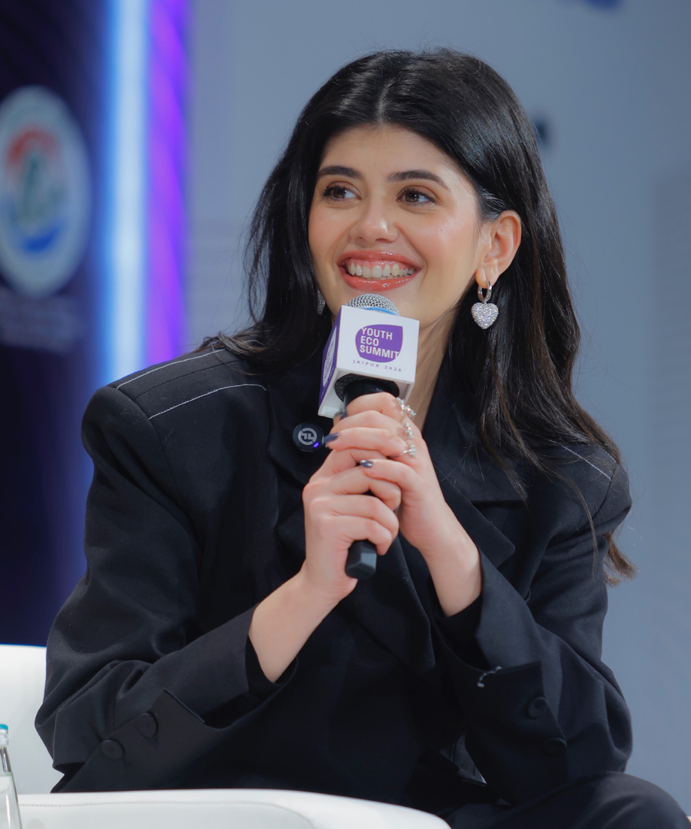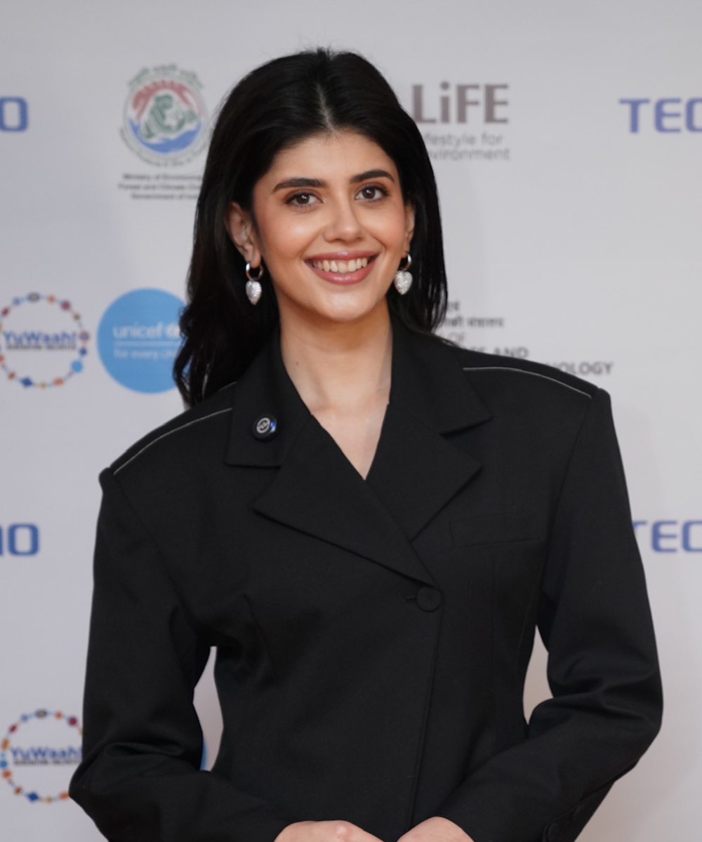 Sanjana Sanghi wearing MNSH Diamond Heart Hoops
