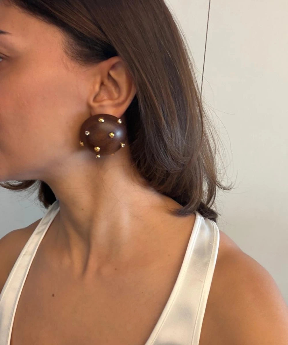 Material: Wood | 18kt Gold Plating with (e-coating) | Brass | CZ