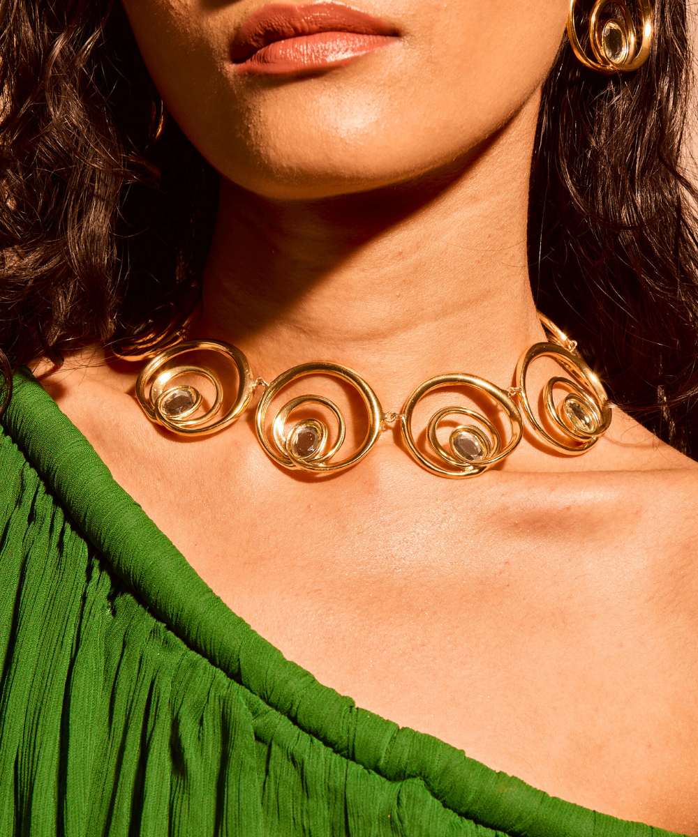 Embrace fluid elegance with this wave round choker, a contemporary piece that curves gracefully around the neck. Crafted with smooth, undulating lines, it offers a modern take on classic choker styling. Perfect for layering or wearing solo, this versatile accessory complements both casual and dressed-up looks. The rounded wave design creates a soft, flattering silhouette that works with any neckline. An effortless way to add movement and sophistication to your everyday ensemble.